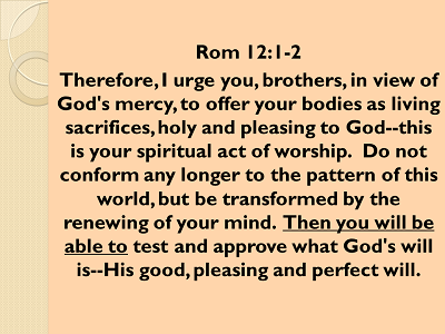 Pray that God will help you be trained by the Holy Spirit on how to present your body as a living sacrifice. Ask God to empower you to take the things you are learning from the Holy Spirit and be able to apply them to this problem you are having with your body. Tell Him you trust His description and evaluation of your body. Let Him know you believe your body is your problem with being able to hear His voice clearly. |
